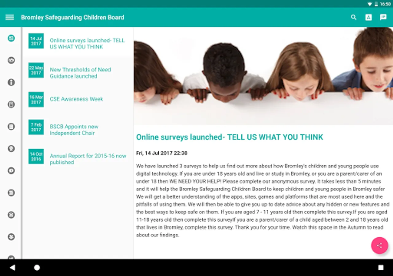 The Bromley Safeguarding Children Partnership (BSCP) App provides information on safeguarding children for use by professionals.