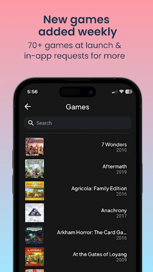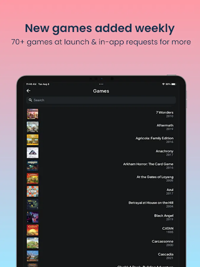 • Tons of Games: 70+ rulebooks at launch, from in-depth strategy to family and party games.
