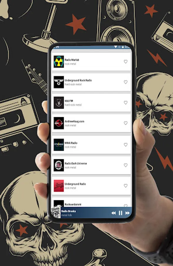 black metal radio is a quick and easy application for live streaming of songs, news, comedy shows and others, you will have access to the best stations where you will enjoy the music that is in fashion with an easy-to-use interface, with just one button you can add your radios to your favorites list. For a better search and location of your favorite radio. The application will be updated permanently, if you want us to add some radios just write to us.