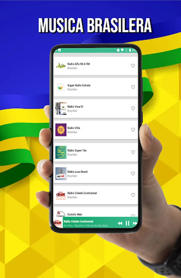 Brazilian music is a quick and easy application for the live transmission of songs, where you will enjoy the music that is in fashion with an easy-to-use interface, with just one button you can add your radios to your favorites list. For a better search and location of your preferred radio. The application will be permanently updated, if you want us to add some radios just write to us.