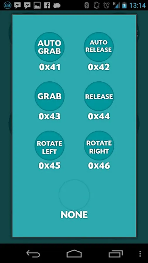 This application use bluetooth connection in Serial Port Profile (SPP).Send hex code to robot as follows :