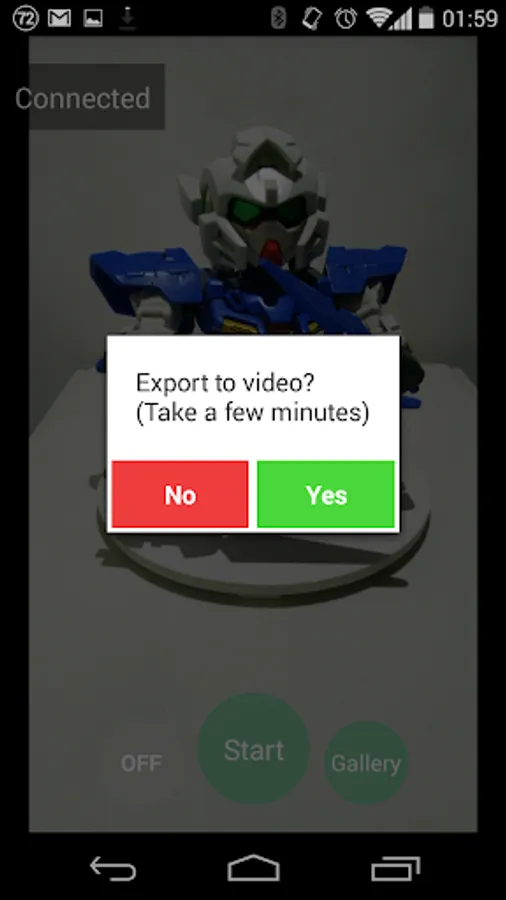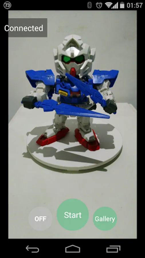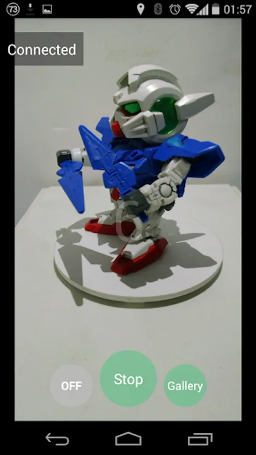 Just put your phone on best position to take an object photo and connect to IOIO board then touch to start it. This operation will auto take a photo and rotate object until around the object (360 degrees). After finish, you can choose that you want to export to video.