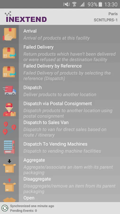 INEXTEND is a mobile, cloud-connected event tracking solution for the supply chain. The application makes it possible to scan any goods entering or leaving a warehouse and to establish tracking records for their movements, in accordance with GS1/EPCIS standards.