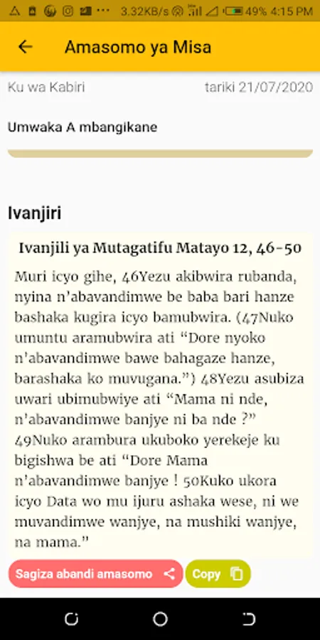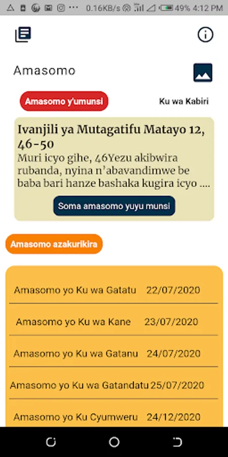 Amasomo is a Rwandan application that helps you to read Catholic Daily Readings. the application was developed for people who understand Kinyarwanda.