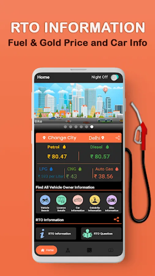 Download our app to get all types of RTO information. To prepare for the RTO exam, download our app to get daily petrol-diesel, gas prices, information about your vehicle like insurance date, owner information, etc.