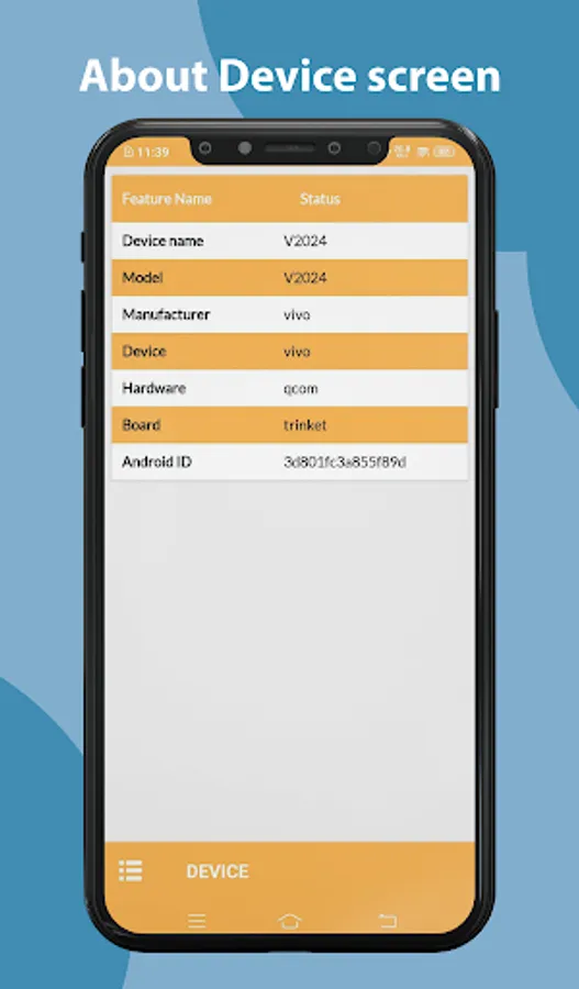 Device Info and IMI Checker is a simple and powerful Android application that gives you complete information about your mobile device with advanced user interfaces and widgets. For example, device Info/ phone Info includes information about CPU, RAM, OS, Sensors, Storage, Battery, SIM, Bluetooth, Network, Installed Apps, System Apps, Display, Camera, Thermal, etc. Also, device Info & imi checker/ phone Info can benchmark your device with hardware tests.