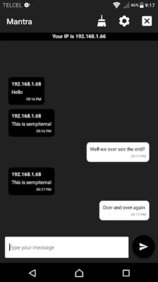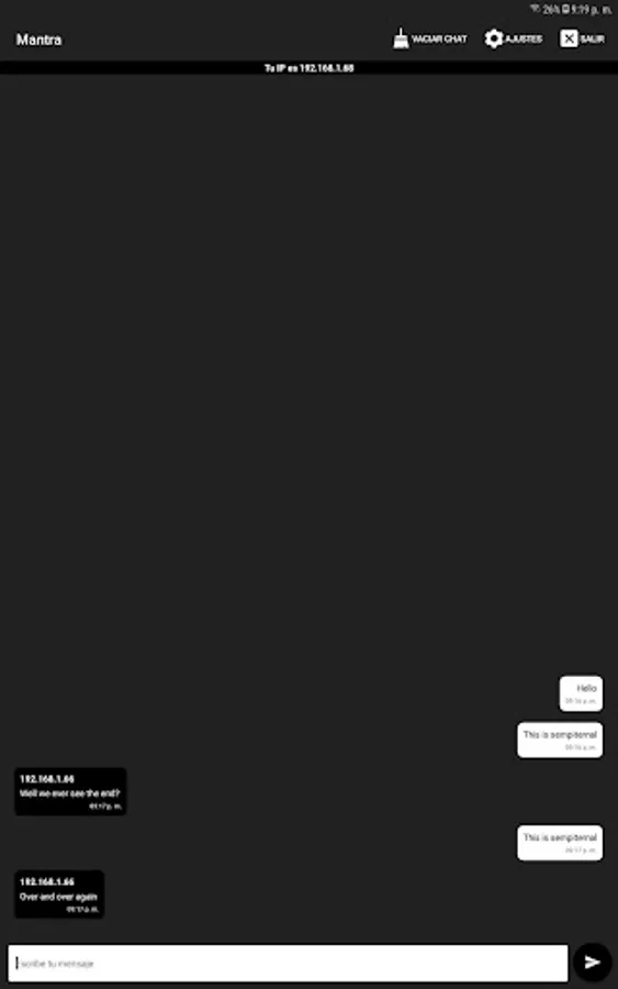 With Mantra, you can chat on your Wi-Fi network without the need of an Internet connection. It is enough that the devices running Mantra are within their local Wi-Fi network.