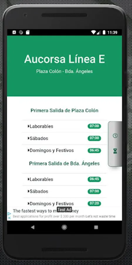 Aucorsa - Line E in Córdoba. This App quickly shows you the schedules of the first and last departures of the AUCORSA bus line E in Córdoba as well as the stop-by-stop time, its route and departure times from Plaza Colón, Bda. Angels and the Prison