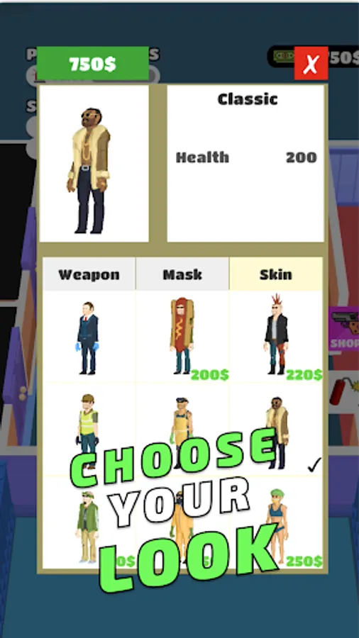 👀 Choose your look from a bunch of different skins and masks! Be stylish!