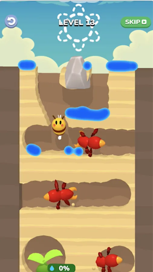 You play as a cute bee who wants to deliver water to a flower so that it grows. You need to find and dig the right path in the ground to get to the flower seed. There are many challenges and obstacles waiting for you along the way! Lava, insects and difficult situations, but you are great, and you will succeed!