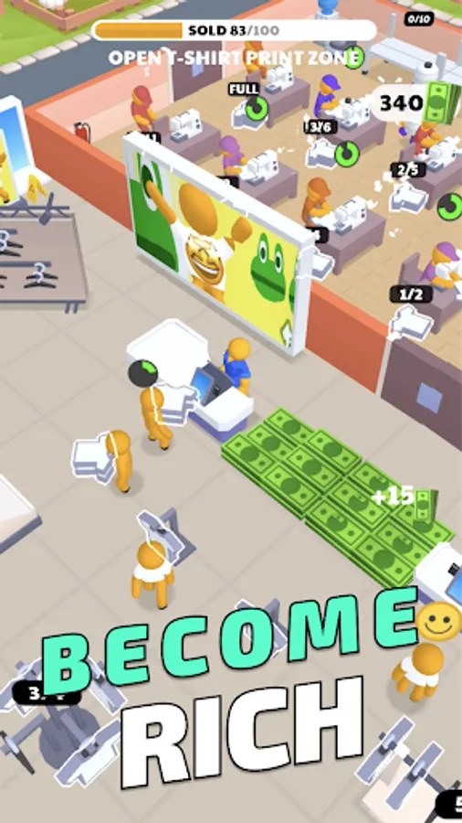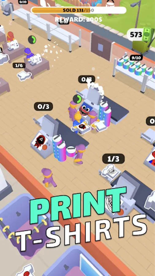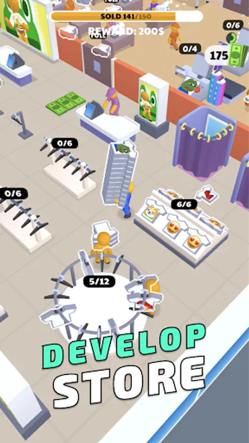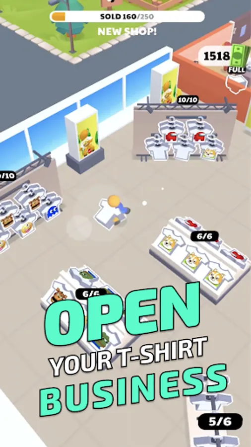 🏪 Build up the store's sales area, arrange hangers, signs, and more so that more customers come and you sell more t-shirts!