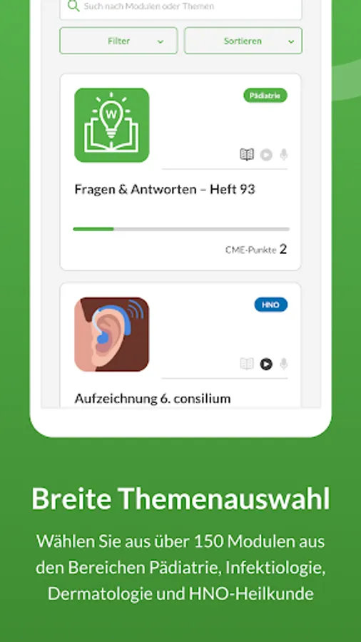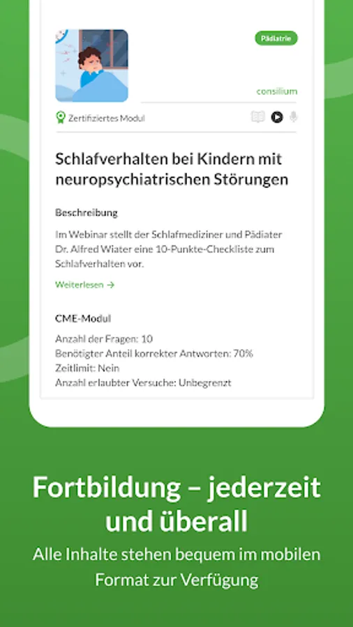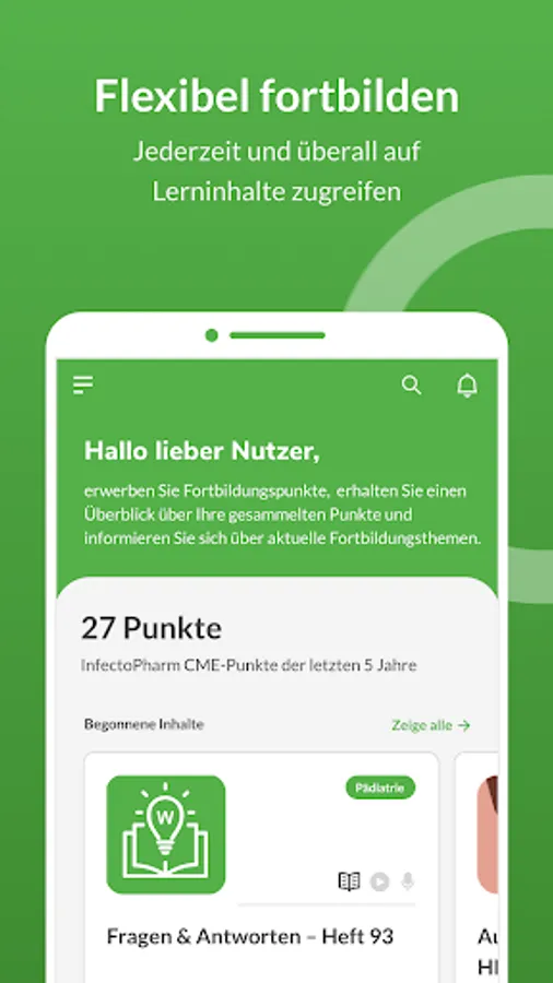 CME-certified learning content, themed booklets, podcasts, webinars for professionals - combined in one app. Practice-relevant content tailored to your everyday work, always ready to hand on your smartphone or tablet. We have combined the learning content of the consilium and InfectoPharm Academy brands in a contemporary and easy-to-use medium.