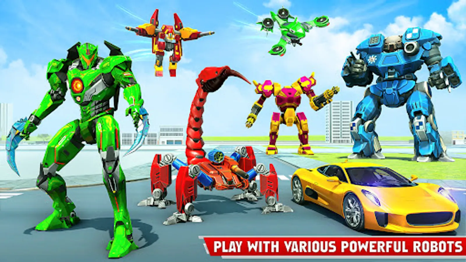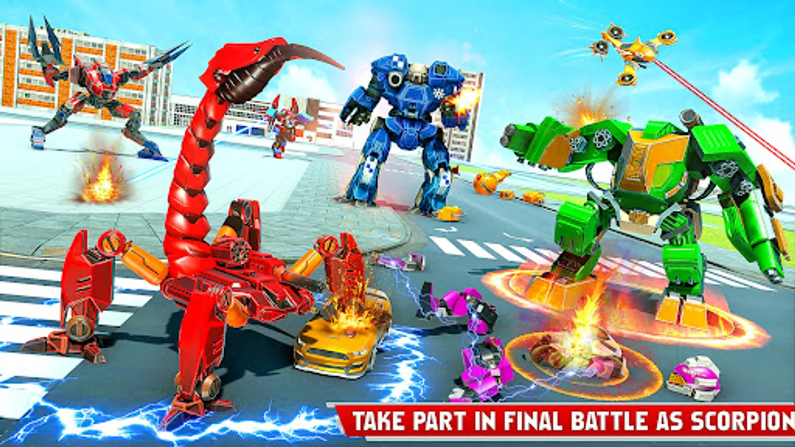 Game Inferno brings for you the robot transformation game and welcomes to another stellar robot car game to be enjoyed in transform robot games. Transform robot game with scorpion robot comes your way into the mix of the latest robot transforming game. robot transforming games with the thrill of car robot game have been developed for robot games 3d for your enjoyment. Scorpion simulator stings the enemies in robot car games playing in grand MECH robot arena. What is with scorpion robot game is that we have given our users a large variety of enemies with various powers each bring its own unique challenge to this robot transform game. To add a cherry on top we also give our users 3 robots to choose from as the main robot hero player of robot transformation game. Scorpion game has a story based in desert environment. Scorpion shooter games come with 4 options in popular robot transformation where you can either choose a robot to play with or you can transform into a robot car or fly away in the robot flying car in this Space robot game. What we have introduced into transforming robot games is a separate MECH robot mode to make the car transforming games more fun. Robot flying game gives you robot transformation into anything in our robot transforming games. The robot flying game is full of thrilling elements of transforming games using robot transformation car. Our Scorpion robot is packed with high level action of transforming animal games along with robot battle game. Robot War Offline is here loaded with action and thrill enjoy through robot fighting games & robot shooting games with transforming robot game. So come and enjoy flying robot game merged with the latest scorpion game.