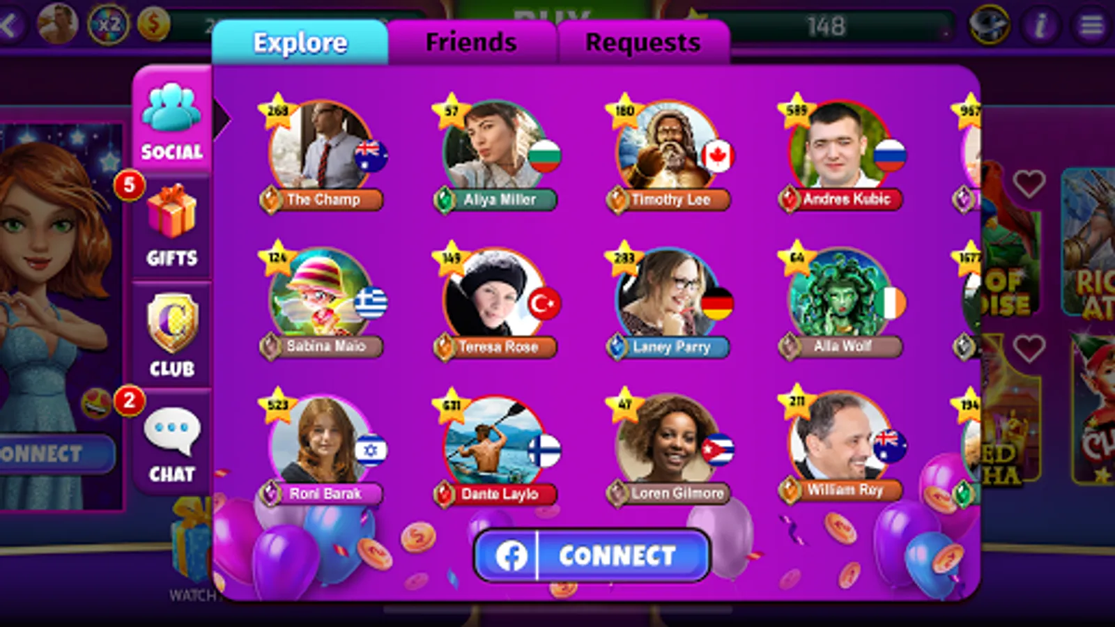 There are multiple parties all over our 777 casino slots machines rooms, but some require exclusive invitation cards and to earn them, you will have to build your reputation and become a VIP party guest!