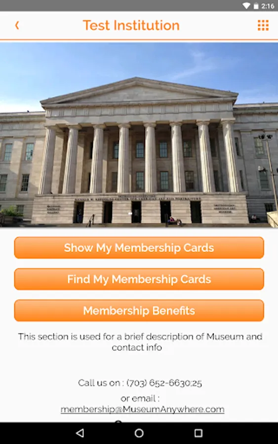 If you do not find your institution when you open the app, please contact their membership staff to provide you eMembership card facility. eMembership cards can only be downloaded for the institutions who have signed up with MuseumAnywhere to provide you digital cards on smartphones.
