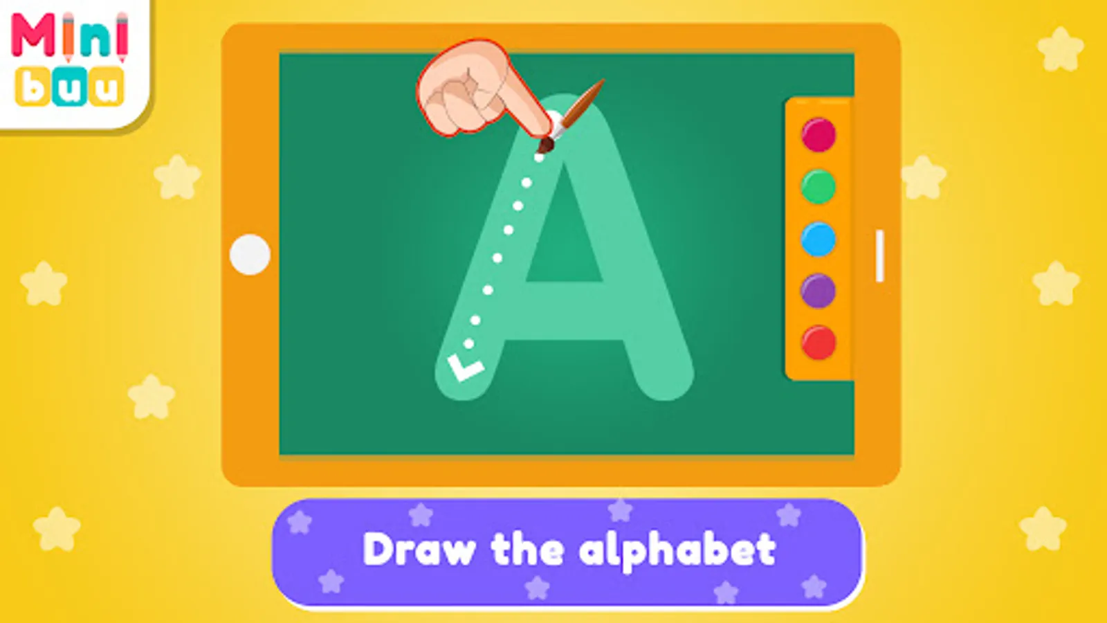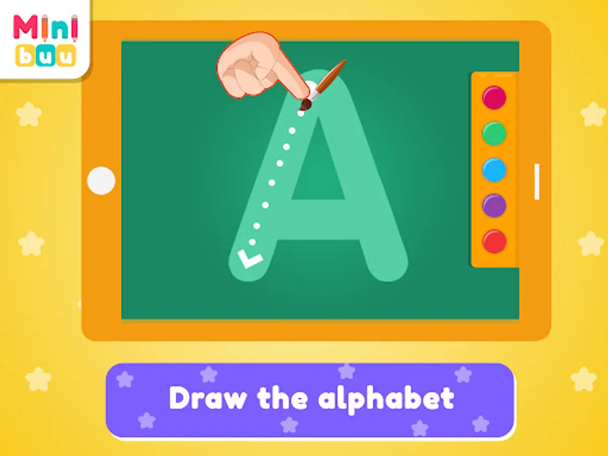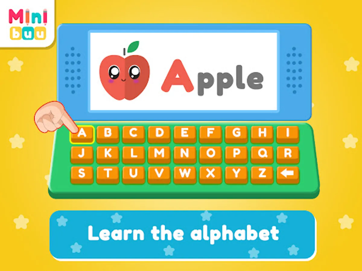 Kids Computer teaches the alphabet with objects that have the letter of the alphabet, for example A is for Apple, B is for Bee, C is for Cat, etc. Kids Computer also teaches your child to write alphabets words letter by letter in an easy way with our smart keyboard. Your child can learn to draw abc letters in