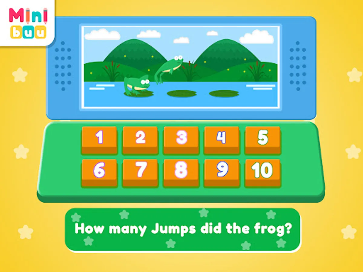 -Learn how to count with the fun and easy game of the jumping frog. This baby game will be a stimulation for the brain and will always give advice to your kid.
