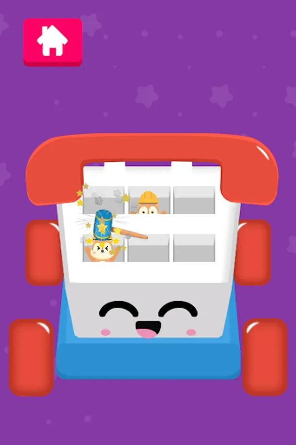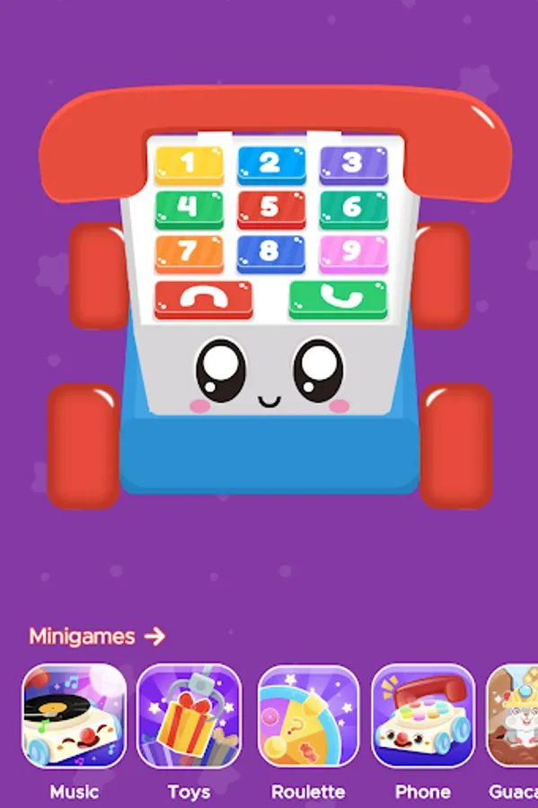 Our mini games will capture their attention within a few seconds, it simulates a real phone so it allows them to explore our colorful menu and play games while they learn quickly how to drag colorful shapes as if they were using a real toy phone with funny sounds and effects.