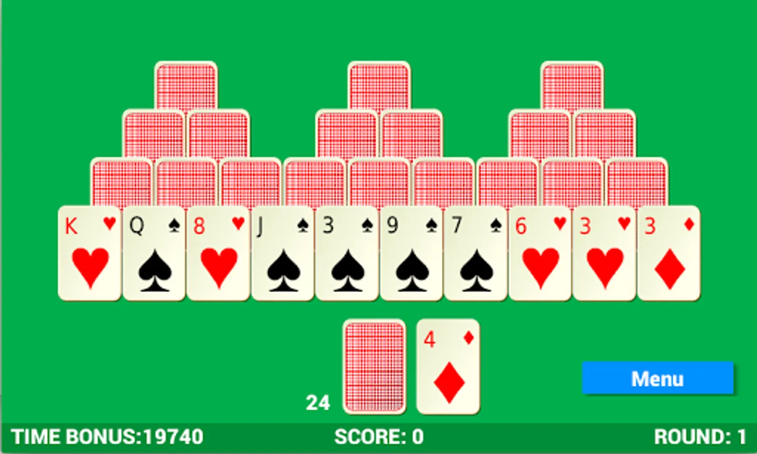 This is a variant of the classic game tripeaks solitaire with a simple and modern look. In this version you have to finish as many rounds you can to archive the highest score.