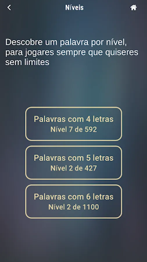 In this game mode, the objective is to discover one word per level. In total there are more than 2000 levels to discover, divided into 4, 5 and 6 letter words.