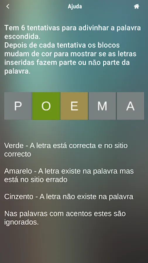 Hidden Word is based on the popular wordle game. This version is entirely in Portuguese.