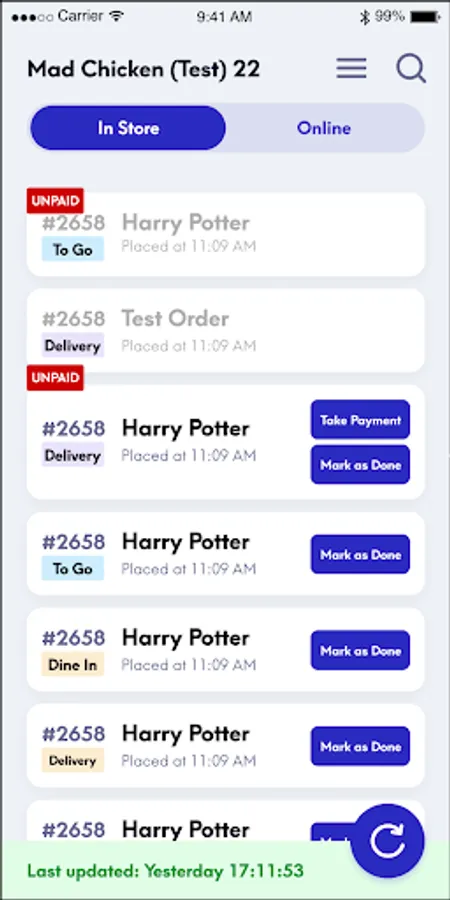 1. Collect orders from INFI kiosks, mobile ordering, and online ordering.