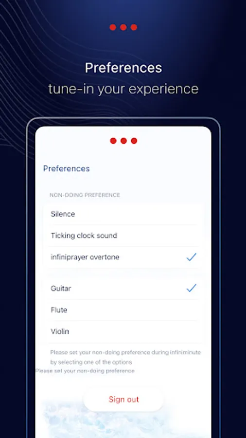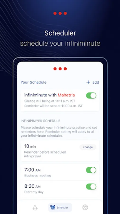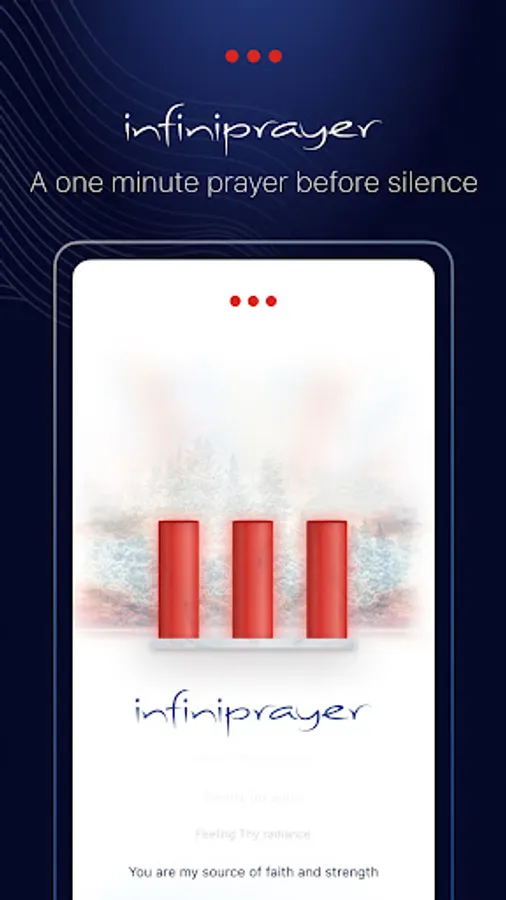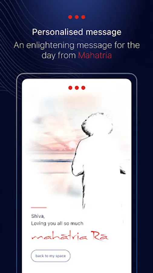 The app initiates this peaceful journey with the infiniprayer(one-minute prayer), followed by a one-minute introverted silence, and then offers you an enlightening message for the day from Mahatria.