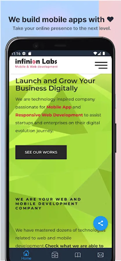 Get the best mobile and web development services with infinion Labs. We are a team of experienced developers and designers, dedicated to delivering top-notch apps and websites that meet the highest industry standards. Our goal is to help you achieve your business objectives and take your online presence to the next level.