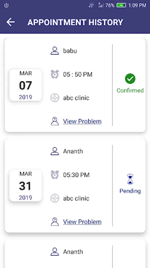 The Patient App enables the patients to view the appointments status whether it is confirmed or pending. Also contains the features of search by health concern, feedback, notifications and more features..