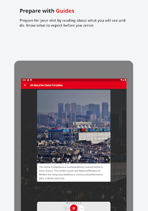 The Centre Pompidou is committed to promoting access to its collections and programming for all individuals. The Centre Pompidou Accessibility app was developed to help people with cognitive and developmental disabilities, including autism, prepare for a day at the museum.