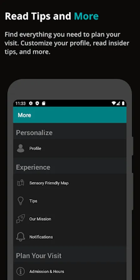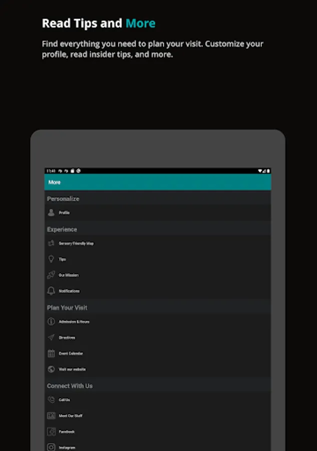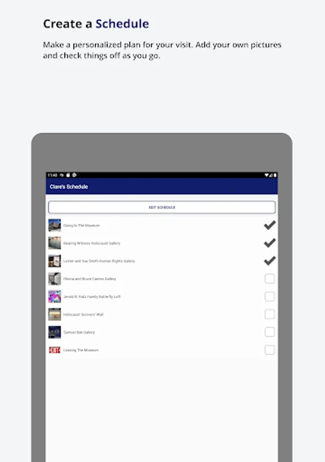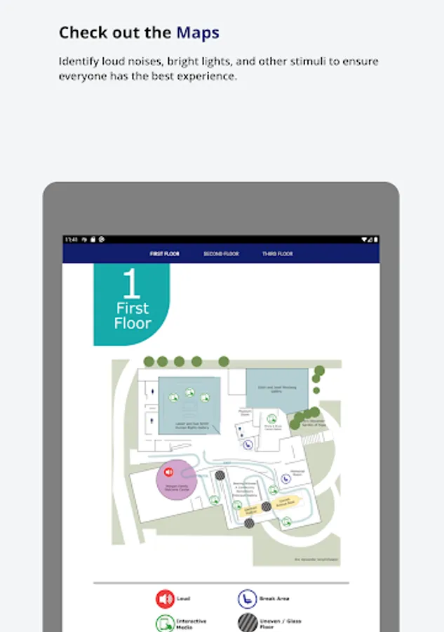 In the app, you can learn about the exhibits and important historical topics, create your own schedule for your visit, play a matching game, and check out other features like the sensory friendly map and insider tips.