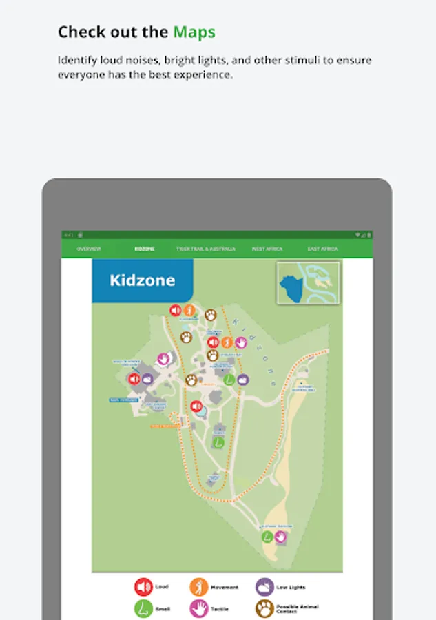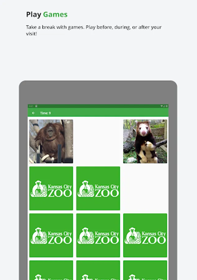 The Sensory Friendly Kansas City Zoo app was designed for all guests including those with disabilities and their families or school groups, to fully engage in the Zoo experience. In the app, you’ll be able to preview the spaces, create your own schedule, play memory, and check out features like our sensory-friendly map and tips for visiting.