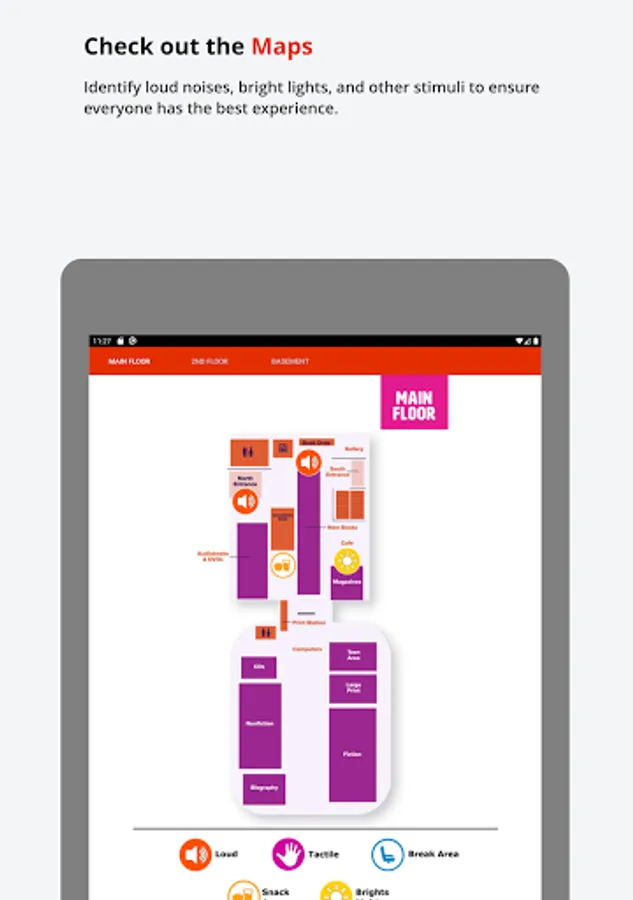 The NPL for All app helps all children, adults and families, including those with autism or other sensory needs, engage with us. In the app, you will be able to learn more about our programs, create your own schedule for a visit to the library, play a game, and check out features like our sensory-friendly map and insider tips.