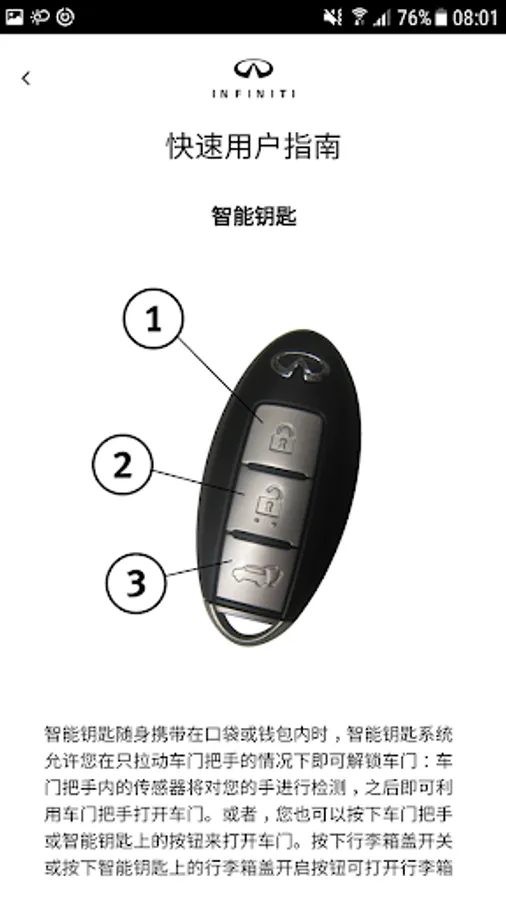 "The INFINITI Driver’s Guide is an application based on Augmented Reality Technology. It will help you to learn and understand more about your vehicle. "