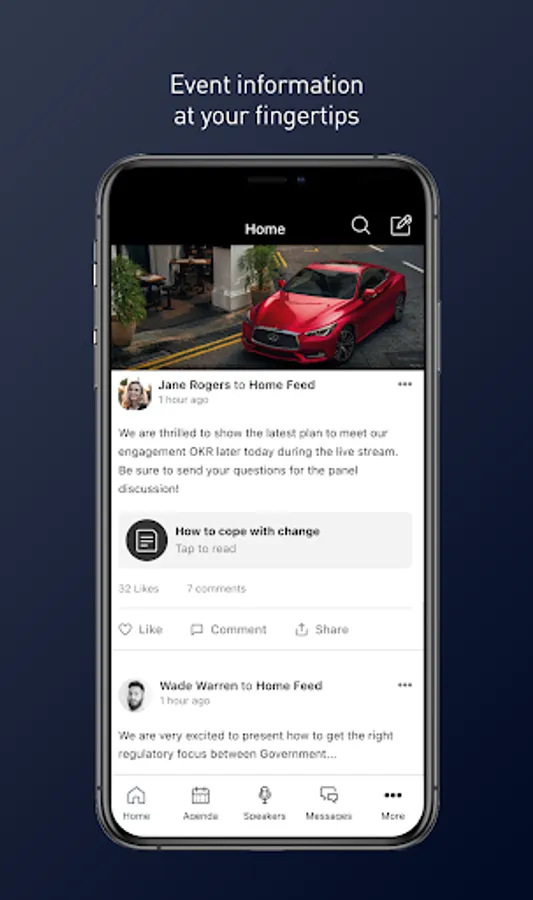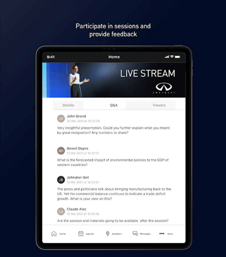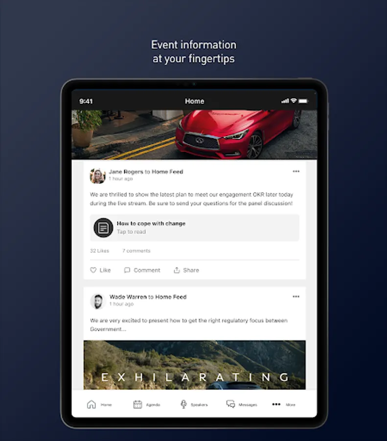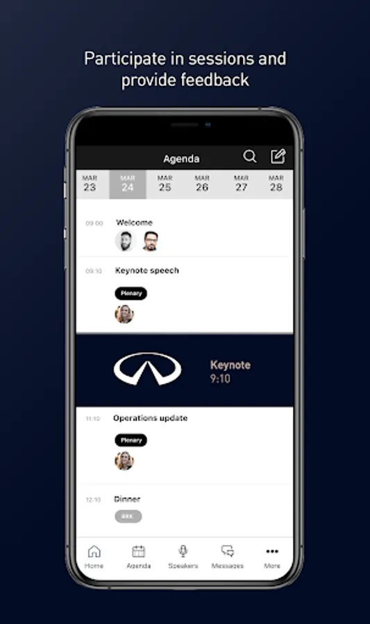 INFINITI Meetings & Events is the official brand mobile app allowing you to view program-related information, agendas, and more for your event. After you download this app, refer to your announcement email for instructions on accessing your meeting or event.