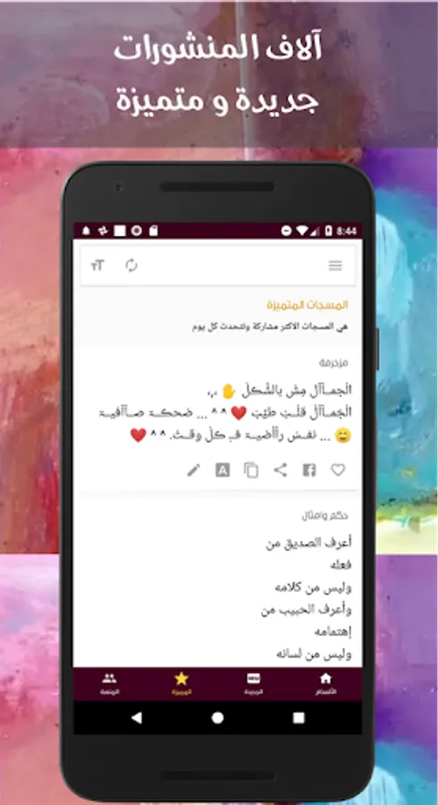 Thousands of words, new and distinctive posts and posts collected in one application to share them via Facebook and social media sites the most beautiful words and rare and renewed posts