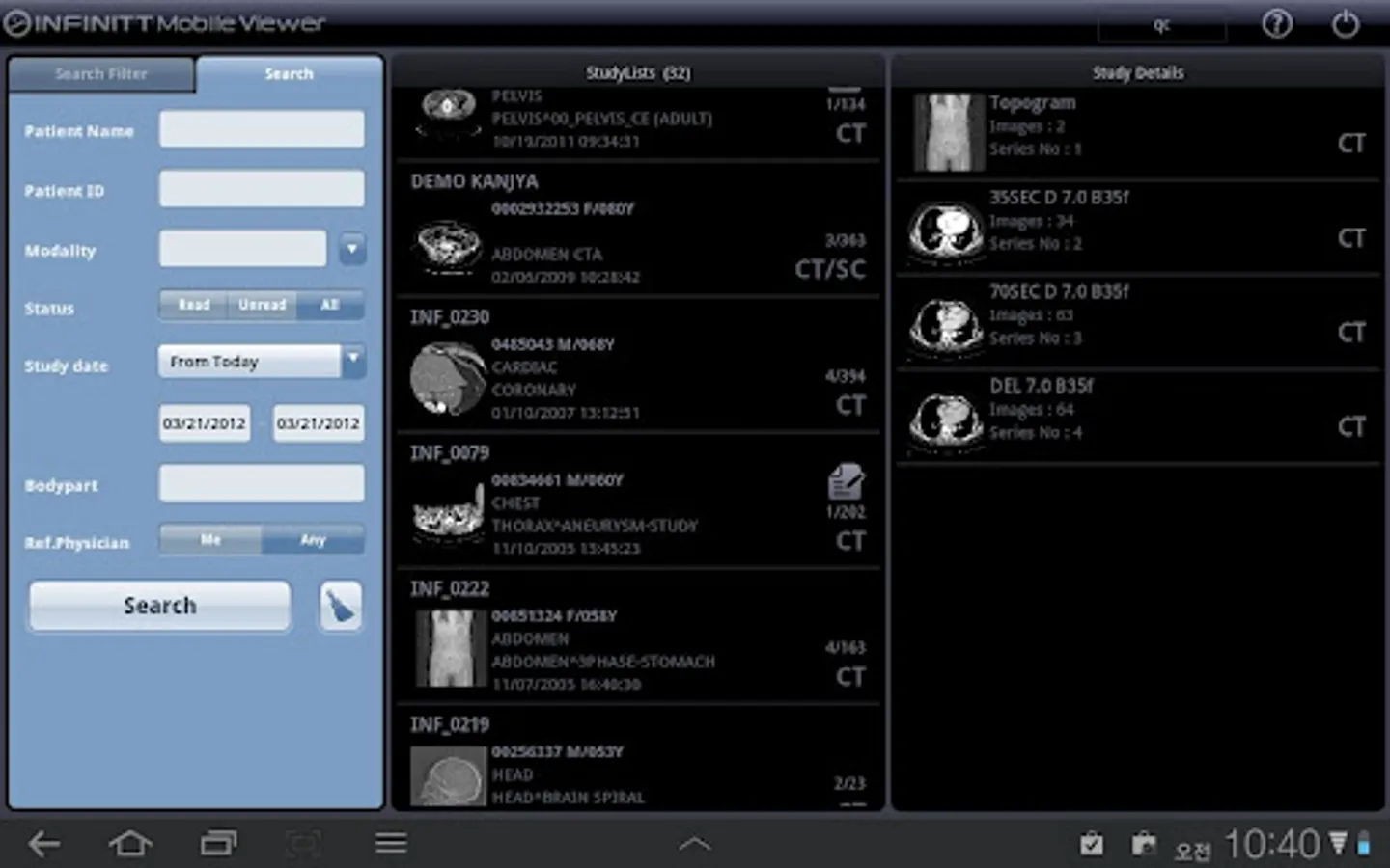 INFINITT Mobile Viewer is a medical image viewing application enabling access to a central DICOM server that runs on mobile devices.