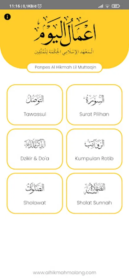 I`Malul Yaum is a mobile application that aims to help Muslims perform prayer and wirid worship more easily and practically via smartphone devices. This application usually contains a collection of prayers and wirid arranged based on time, need, and type of worship. In addition, this application can also be equipped with an alarm feature that reminds you of worship times and a collection of dhikr readings that can be played automatically. With the Prayer and Wiridan application, it is hoped that Muslims can more easily and consistently perform daily prayers and wirid.