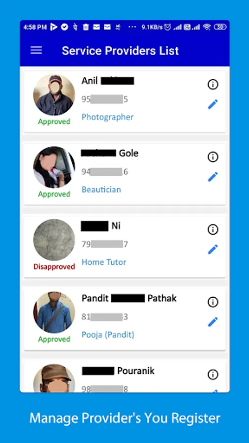 EHS Marketing Agent App is only for Marketing Agents / Registration Agents of eHome Service company. Any one (in India) can become a Marketing Agent of eHome Service company and start earning. A Marketing Agent of eHome Service company can work in any part of India. As an Agent of eHome Service company, you will be able to add many Service Providers to eHome Service App. You will get paid for the each genuine and approved Service Provider of selected Categories* added in eHome Service App. Please refer "Help" and "FAQ" given in EHS Marketing Agent App for more details.