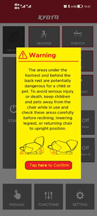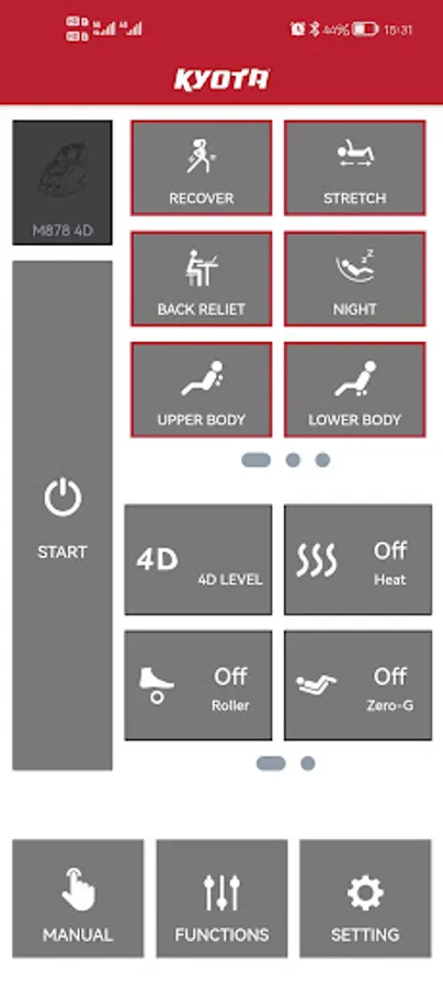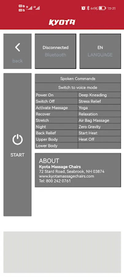 The Kyota massage chairs mobile app is a world changing interface that allows you to connect wirelessly to your Kyota massage chair. Not only will you be able to control your massage you will be able to listen to your music through Bluetooth as well.