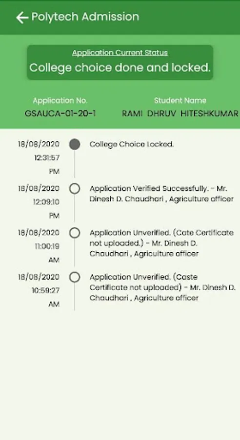 can get application current status and it's history by application number.