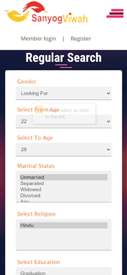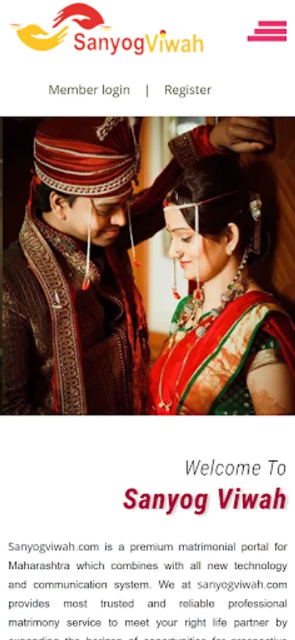 Sanyogviwah.com is a premium matrimonial portal for Maharashtra which combines with all new technology and communication system. We at sanyogviwah.com provides most trusted and reliable professional matrimony service to meet your right life partner by expanding the horizon of opportunities for prospective brides and grooms who are serious in finding most suitable spouse. Our highly qualified team of professionals aspires for fulfillment of life through superior matchmaking experience.