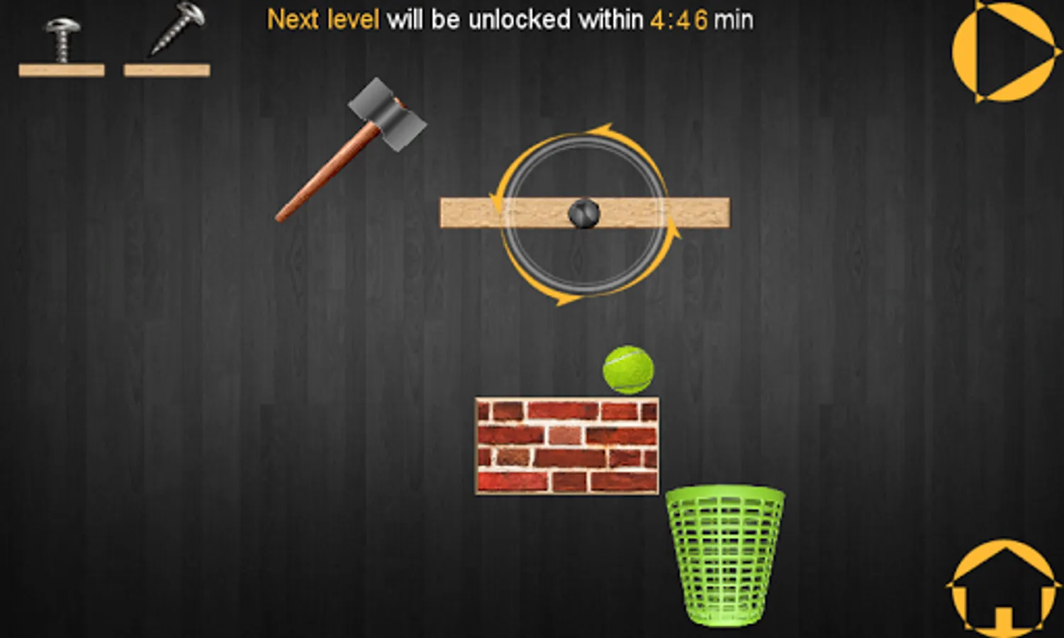 OVERVIEW- You have to make the ball reach to the basket by using provided objects like:- hammer, revolving rod, elastic wheel, nails etc.