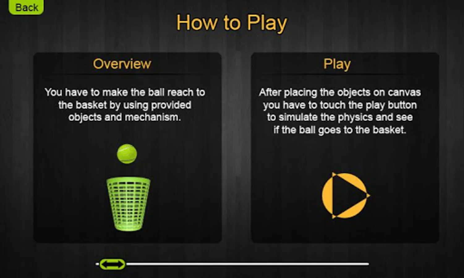 Creativity is essential in the game play MECHANISM. You have to plan a creative structure to move the ball to the basket. For understanding the game play, tutorial and documented helps are also given.