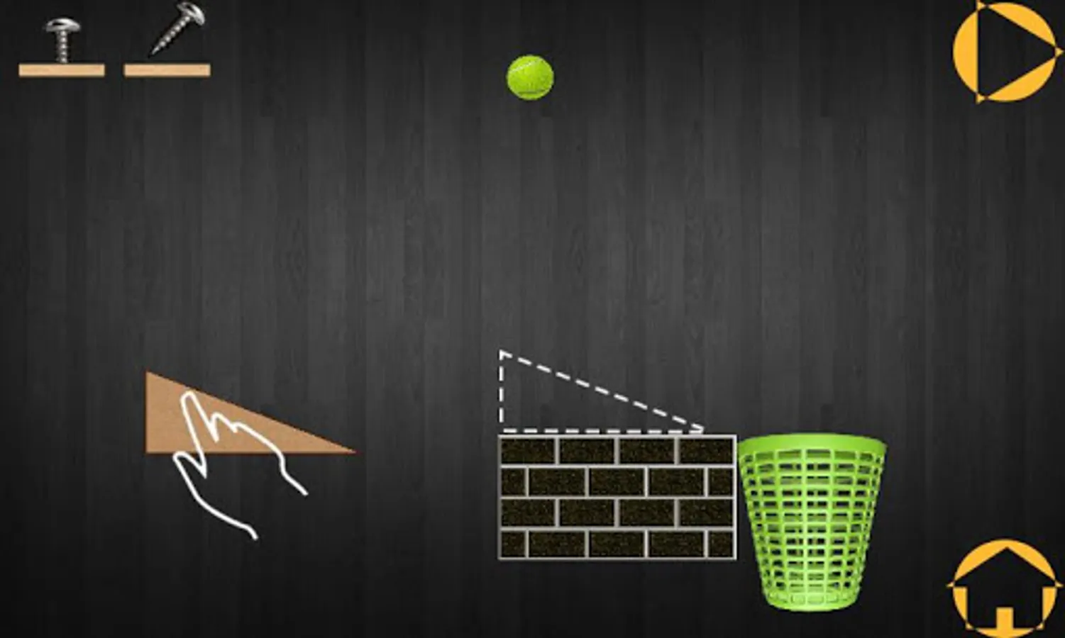 PLAY- After placing the objects on canvas you have to touch the play button to simulate the physics and see if the ball goes to the basket.