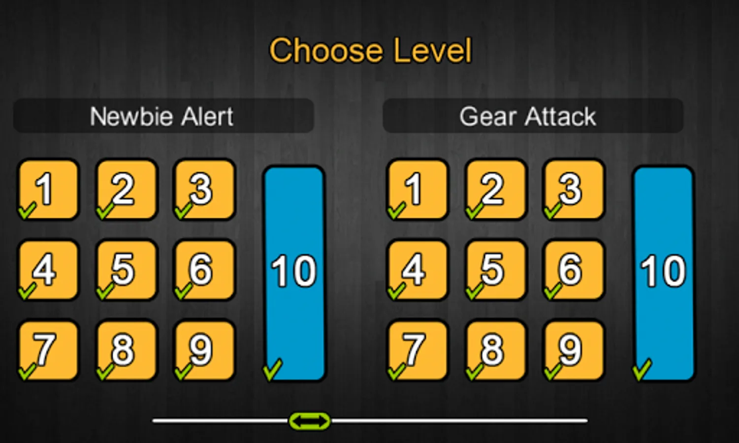 The game play is having 4 interesting stages:-( Newbie level, Gear level, Spin'EM All, Pro attack ).