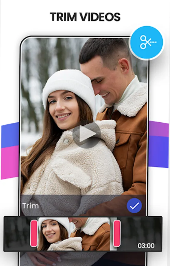 Trim Video | Video cutter is a feature that helps user to trim video and crop video in any length to make smaller video that helps optimize the size of final cut video and reduce memory in mobile phone and also with trimmer video cutter and Video Joiner its quite easy to share final cut of video on different messengers and Social Network fast and easy.