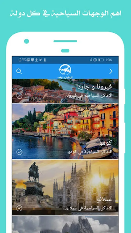 The TravelDave application is the largest Arabic application specialized in European tourism (Austria, Switzerland, Germany, the Netherlands, France, Italy ... etc. and some other countries such as America, Bosnia, Australia and New Zealand, the application contains a lot of information, tips and instructions that help you take The decision to travel with ease and ease, through the application, you can coordinate and arrange your trip yourself. The application is designed with the aim of benefiting the person as a tourist with the smallest details.