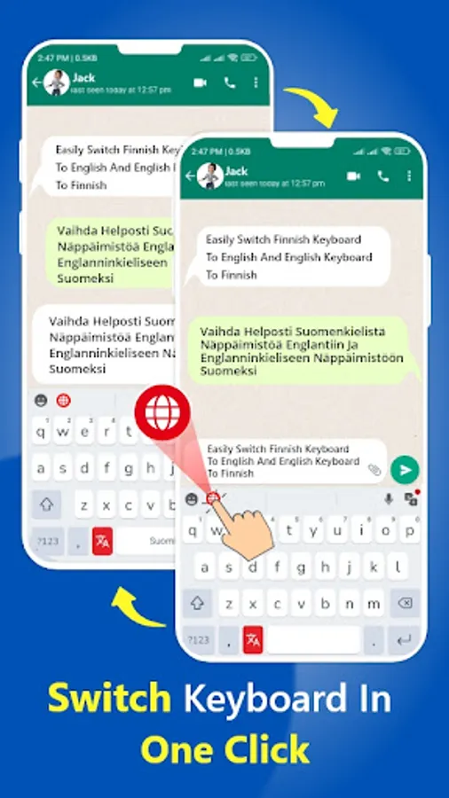 Best Finnish to English Translator keyboard and English to Finnish translator keyboard for Android Phone app that gives you a custom Keyboard for both languages and you can write a message in your native language and then translate in your friend’s language will help you to communicate easily with your friends in social media.