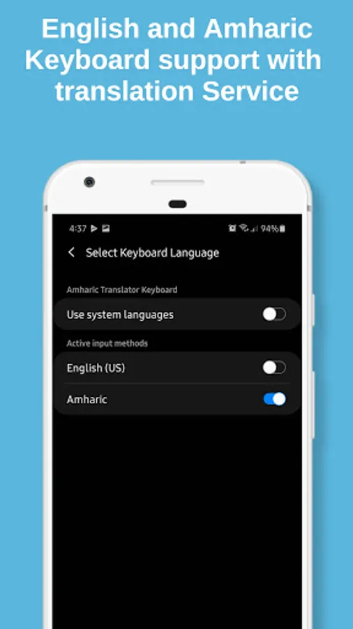 Amharic translator English to Amharic or Amharic translator Amharic to English is highly efficient and good in translating message you can definitely translate any phrase or word in a single click by using our app Amharic Keyboard for Samsung - English to Amharic Keypad Typing. Communication is the biggest source now a days to enhance your network on social media and we found people from different countries and who cannot speak our native language and we cannot speak their language so keep a strong bridge in communication we have designed a perfect and reliable app English to Amharic translator keyboard or English to Amharic translator keypad that can help you in English to Amharic typing and Amharic to English typing.